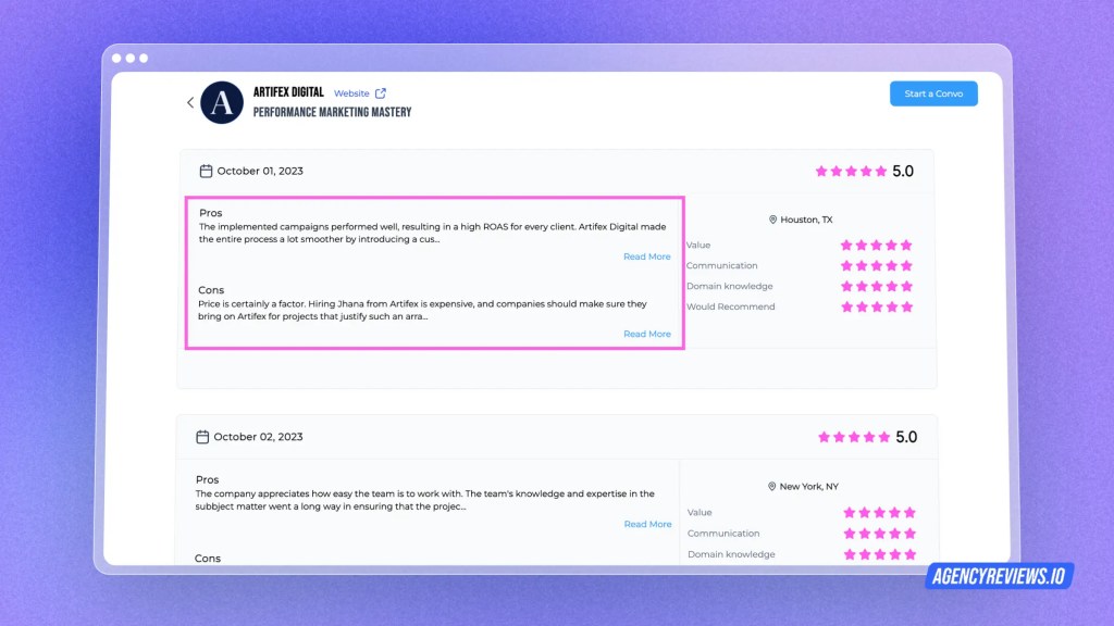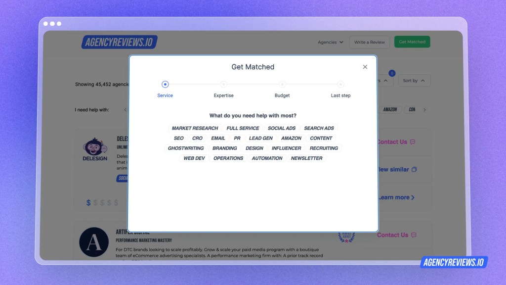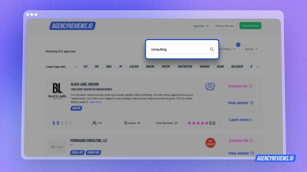 Use platforms like AgencyReviews.io (you’re here already!) to check out your alternatives.